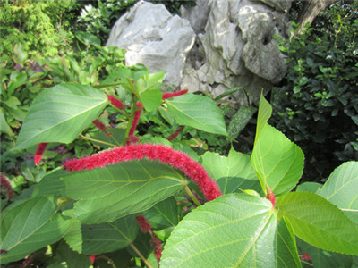 在上海植物园植物大楼旁的花境里,今年新增了些新品种的花灌木,其中一种花序颜色鲜红,长得像毛茸茸的狗尾巴,十分有趣。那就是狗尾红。
